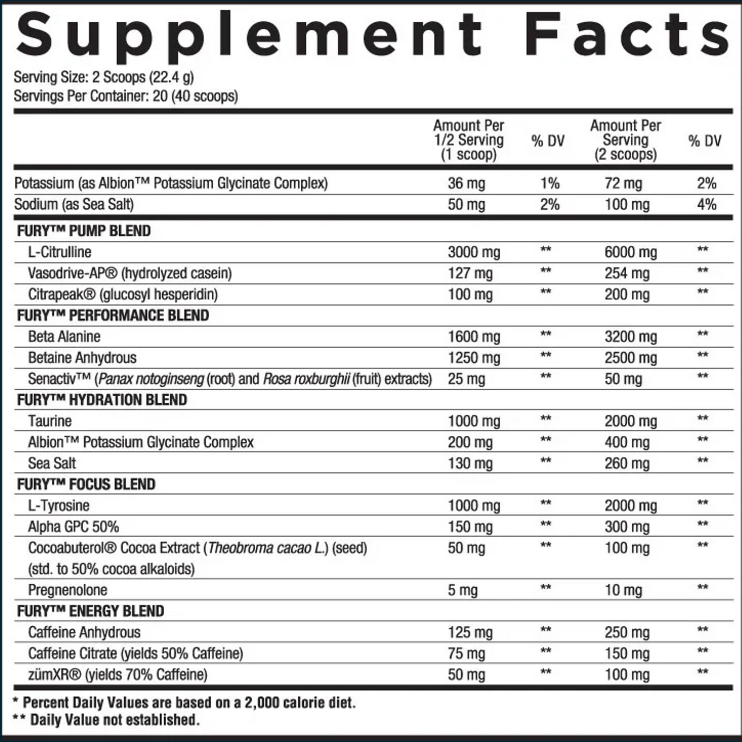 Q: How much caffeine is in Core Fury?